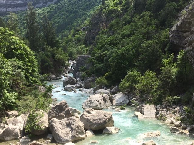 Le parcours du jour : remonter la vallée de la Drôme jusqu'à Vercheny, puis la vallée de la Roanne jusqu'à Saint Benoît en Diois (et même un peu plus), et retour.Ce parcours est très beau. Il est facile, mais rendu difficile, aujourd'hui, à cause d'un violent vent du nord. Je roule avec mon vélo "Look".